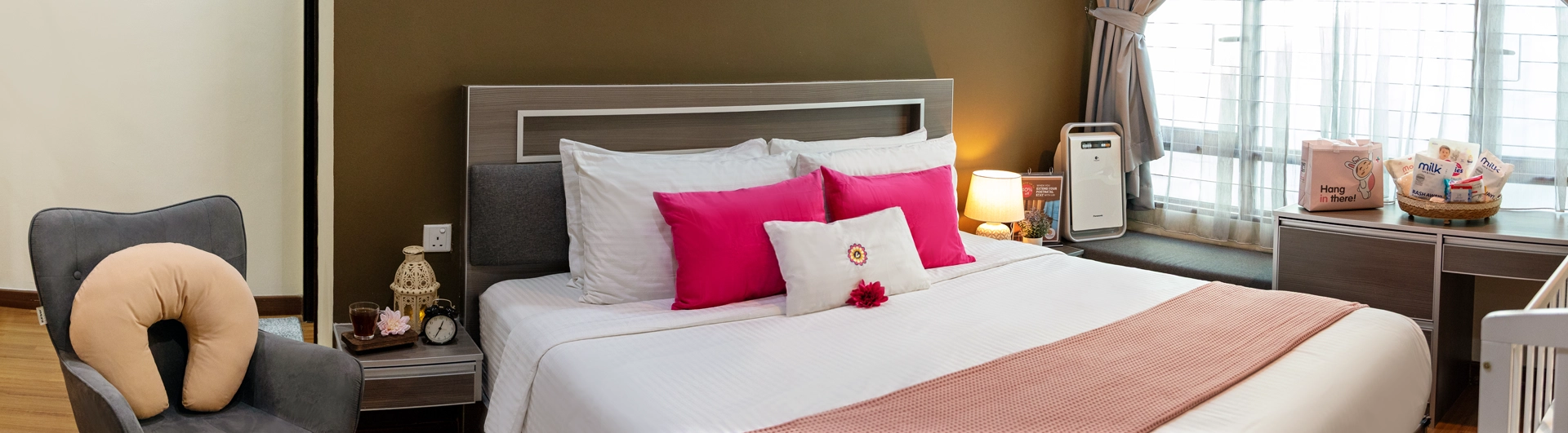 Zinnia Fields Post Natal Retreat is tucked away in the quiet enclave that is Taman Halimahton (Off Old Klang Road). Operating in a bungalow with 11 rooms, we have created a luxurious yet homely convalescing centre that caters to the specific needs of modern new mothers and their newborn babies.